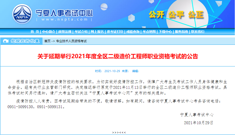 2021年寧夏二級造價(jià)師考試延期通知