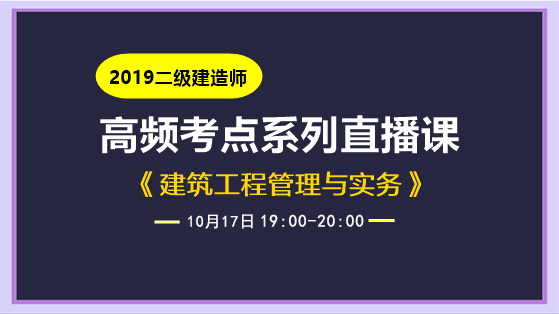 2019年二級(jí)建造師已進(jìn)入備考階段,在備考的道路上你會(huì)遇到哪些難點(diǎn)?如何迎刃而解?面對(duì)這些種種困惑,建設(shè)工程教育網(wǎng)特推出二建高頻考點(diǎn)系列直播課,針對(duì)備考中考生們遇到的問題進(jìn)行答疑解惑,分析二建考情,講解高頻考點(diǎn)知識(shí),帶領(lǐng)考生們層層攻克備考中的難點(diǎn)。