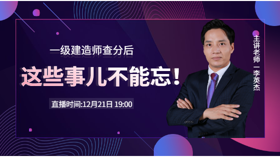2020一級建造師成績公布啦!同學(xué)們忙于查分之余千萬不能忽略查分后的這些事情。12月21日晚19:00,李英杰老師為同學(xué)們細數(shù)查分后應(yīng)注意的事項,一定要記得!