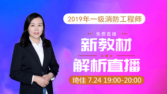 | 7月24日19:00-20:00 | 2019年一級(jí)消防工程師教材解讀直播(上) | 琦佳 | 點(diǎn)擊進(jìn)入 |
