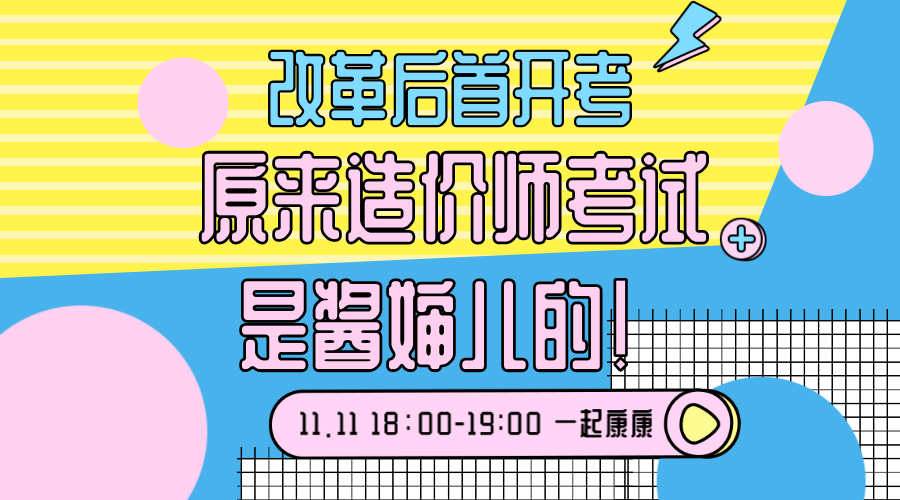 11月11日18:00,讓我們一起相聚建設工程教育網直播間,聽娜老師聊聊造價工程師考試的那些事!直播主要內容:造價工程師改革后,2019年一級造價工程師和二級造價工程師首次開考考試詳情。