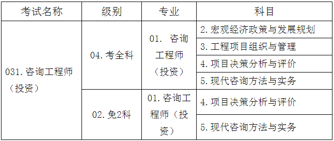 (二)凡符合以上規(guī)定并具備下列一項條件者,可免試《宏觀經(jīng)濟政策與發(fā)展規(guī)劃》《工程項目組織與管理》科目,只參加《項目決策分析與評價》和《現(xiàn)代咨詢方法與實務》2個科目的考試。