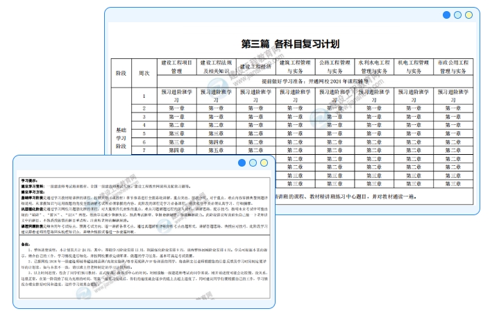 了解咨詢整體學習邏輯,包括預習階段,基礎階段,強化階段和沖刺階段,貫穿一建備考全過程,總結各階段特點,精準把握復習節(jié)奏。解決大家不知道怎么學,以及如何更高效學習的問題。然后就是對各科考試特點進行分析,幫助大家確定科目學習順序。