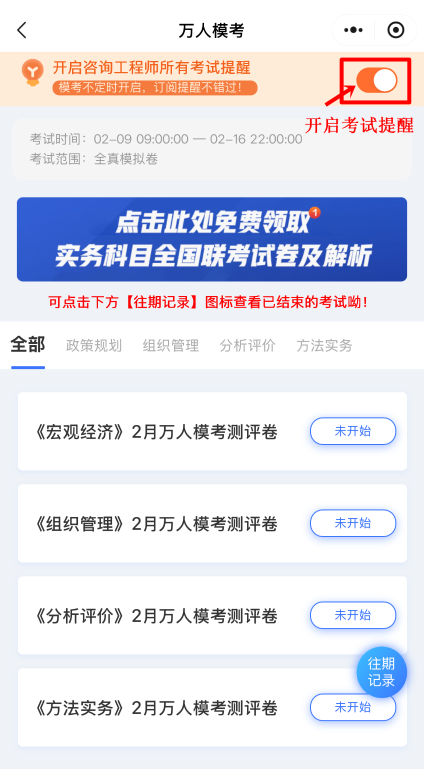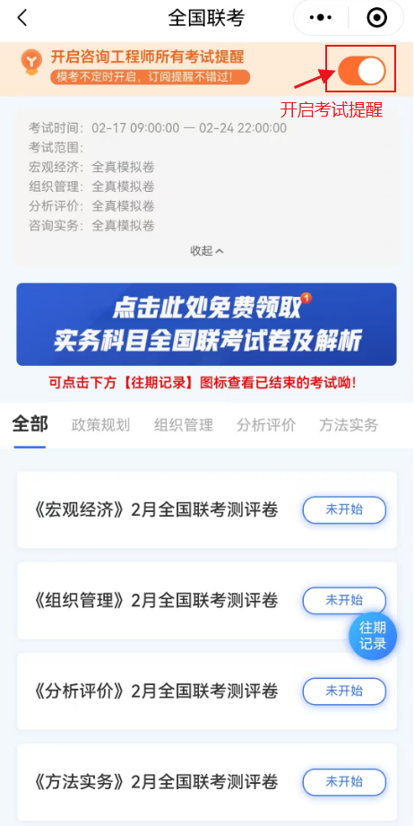 方式二:微信搜索【正保刷題寶小程序】點(diǎn)擊咨詢工程師【萬(wàn)人??肌?,建議開通考試提醒,避免錯(cuò)過(guò)考試時(shí)間。