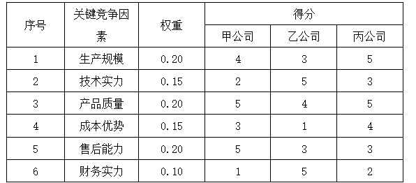 表 甲、乙、丙公司競(jìng)爭(zhēng)態(tài)勢(shì)矩陣
