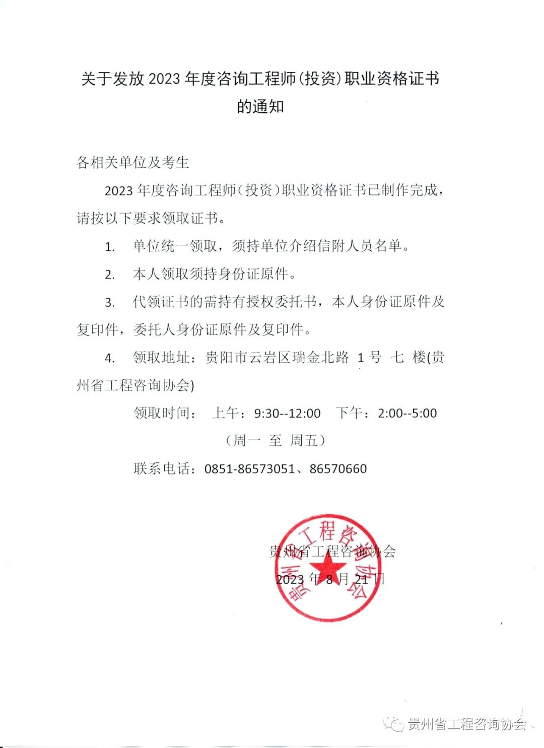 貴州關(guān)于發(fā)放2023年度咨詢工程師(投資)職業(yè)資格證書的通知