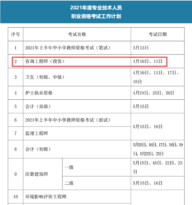 速看!2021年咨詢工程師考試時間確定為4月10、11日