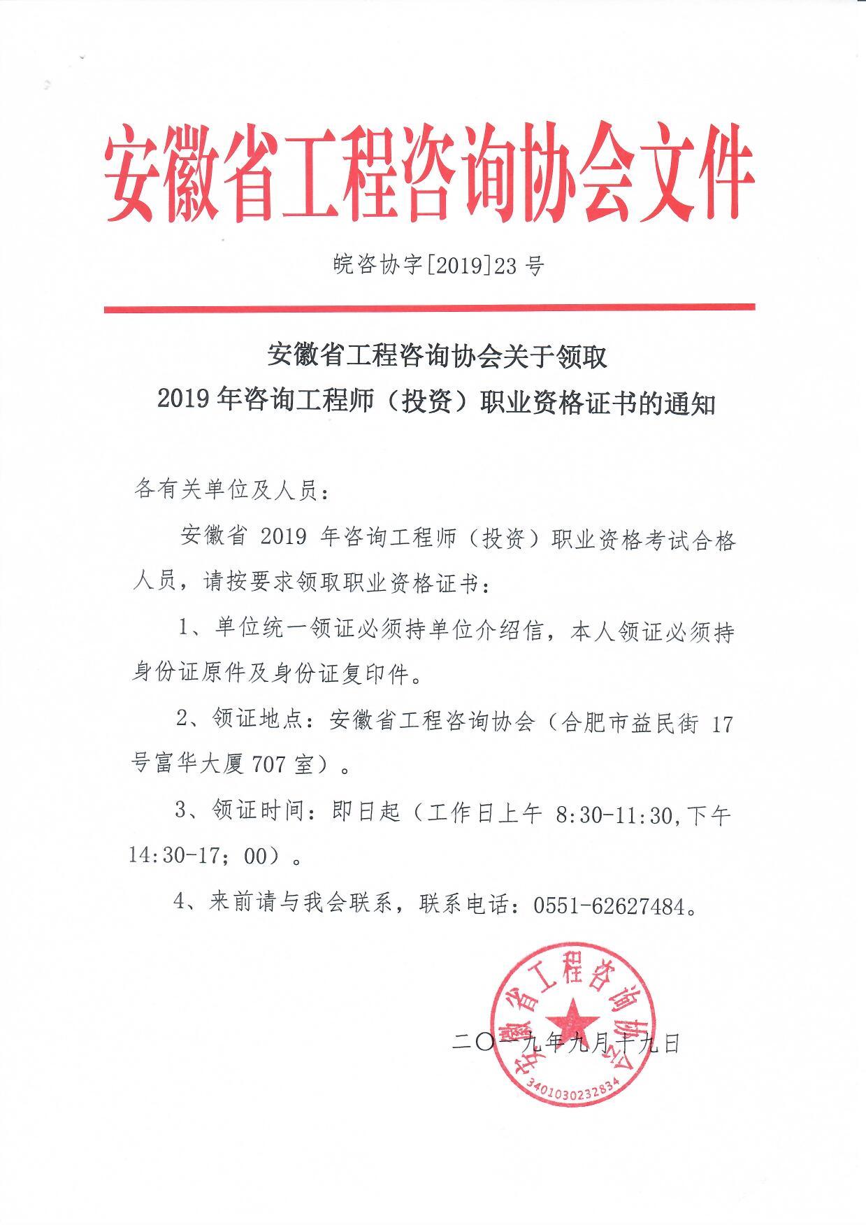安徽省2019年咨詢工程師證書領取、發(fā)放通知